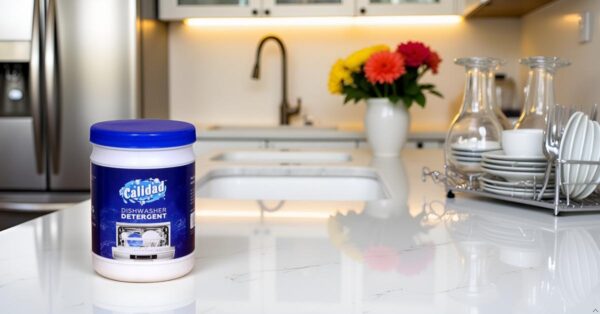 Transform your dishwashing experience with Calidad Dishwasher Detergent powder. This powerful 1 kg pack delivers exceptional cleaning performance for your automatic dishwasher. The specially formulated powder effectively removes tough food stains, grease, and residues from your dishes, glasses, and utensils, leaving them sparkling clean. The concentrated formula ensures optimal cleaning results while being economical in use. Suitable for all types of automatic dishwashers, this detergent helps prevent water spots and leaves no chalky residue on your dishes. The convenient packaging with a secure lid keeps the powder fresh and dry. Make your daily dishwashing routine more efficient and achieve consistently clean results with Calidad Dishwasher Detergent. For best results, follow the usage instructions on the package and adjust the quantity based on your load size and water hardness.